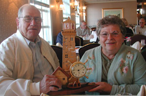 Garmer (Baldy) and Alta Kleen admire a clock made by Bob Cufaude.
