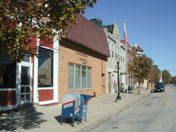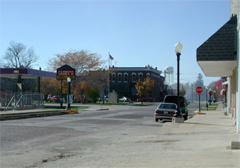 This view is looking west on Fifth Street 1/2 block east of Oak Street. Notice