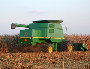 Randy Koehler is shown here combining corn in his new John Deere combine in a field southwest of Minonk.