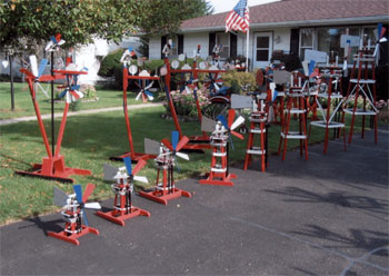 Wilbur Rossman poses with one of the many windmills that he makes as a hobby in his home